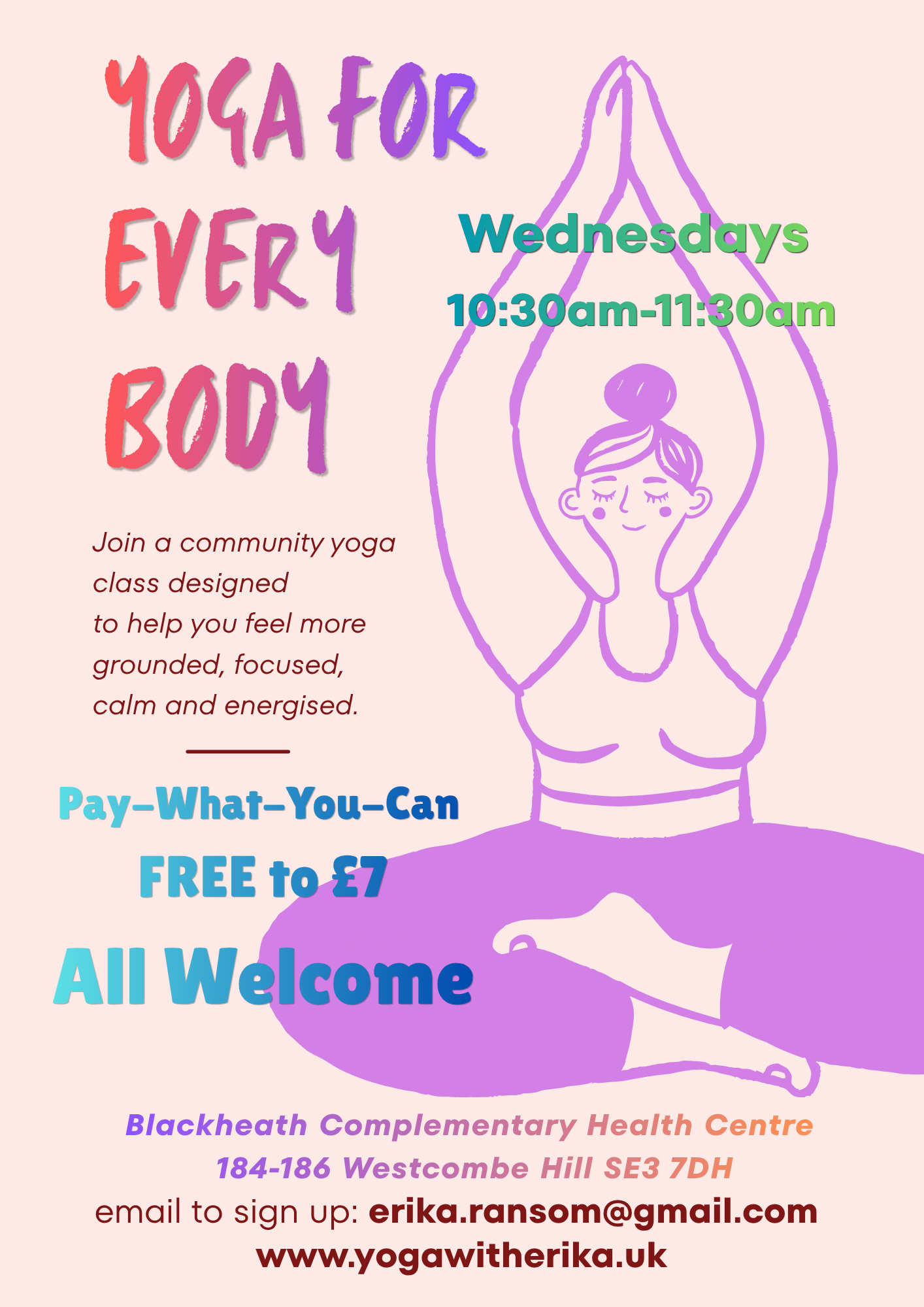 This is a pay-what-you-can community class, with a suggested contribution of £5–£10, but you’re very welcome to come for free if that feels right for you. It’s a lovely way to ease into yoga and see if it’s for you.